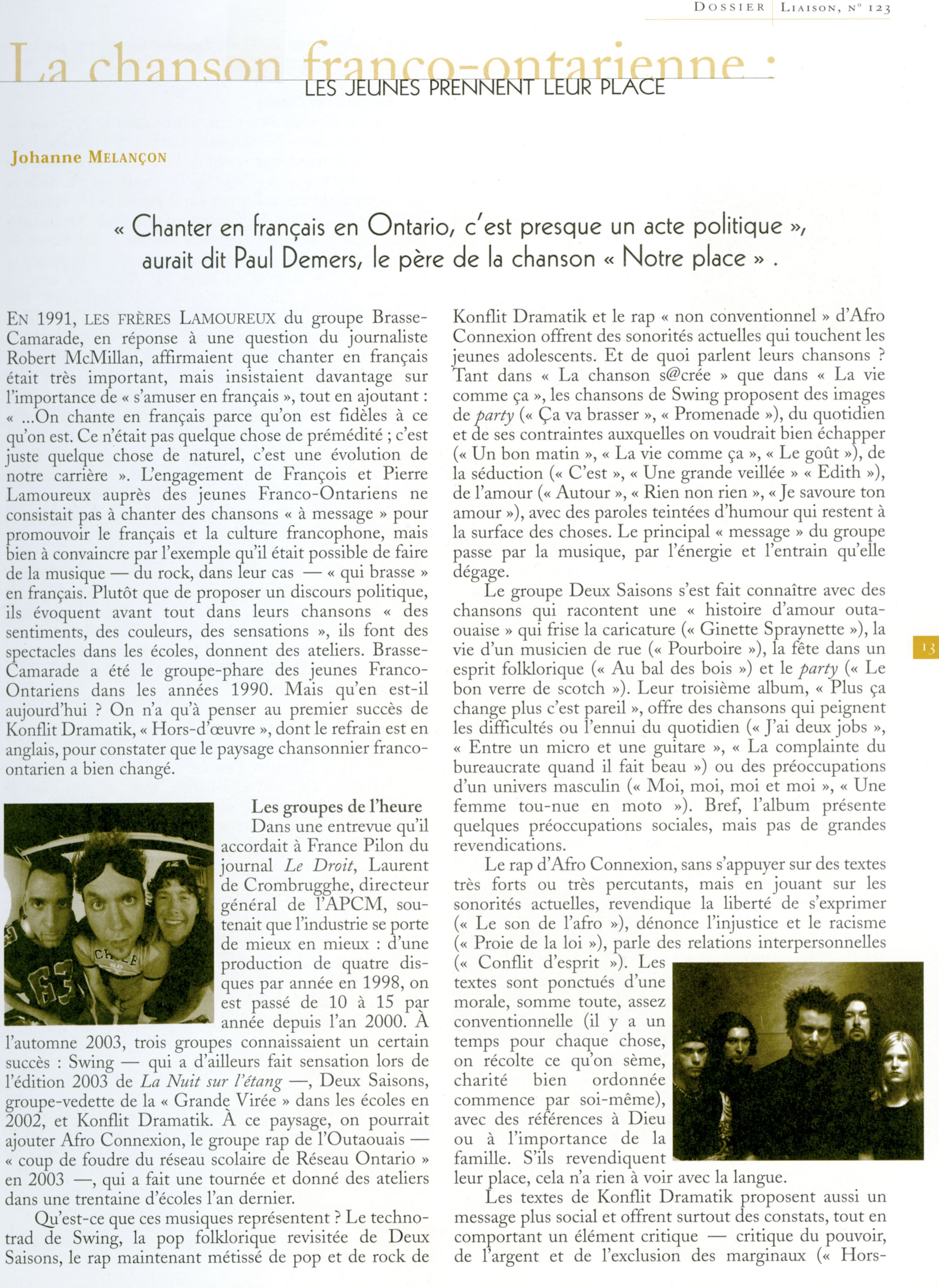 1 Paul Demers, “Notre place,” music by Paul Demers and François Dubé (translated from the original).