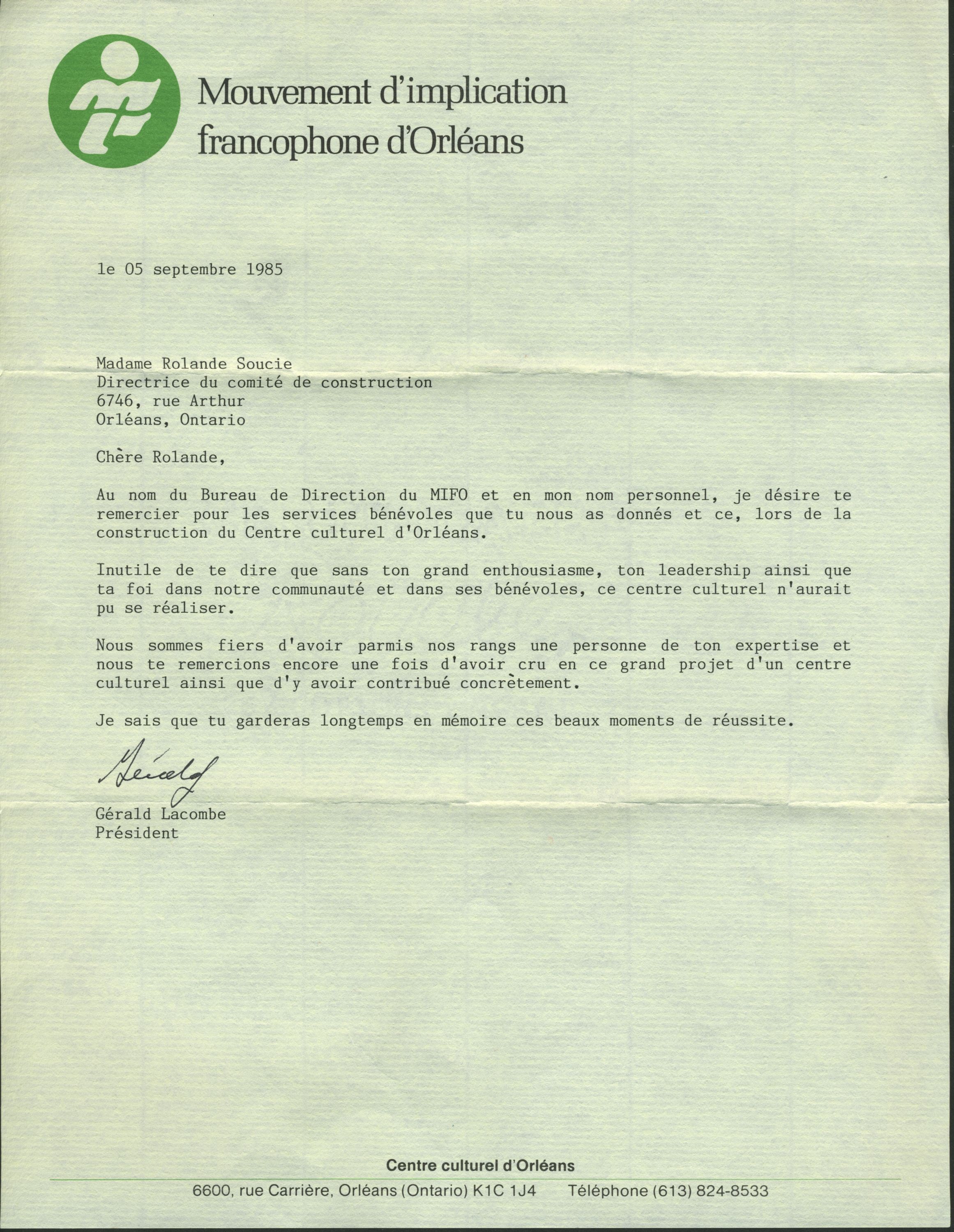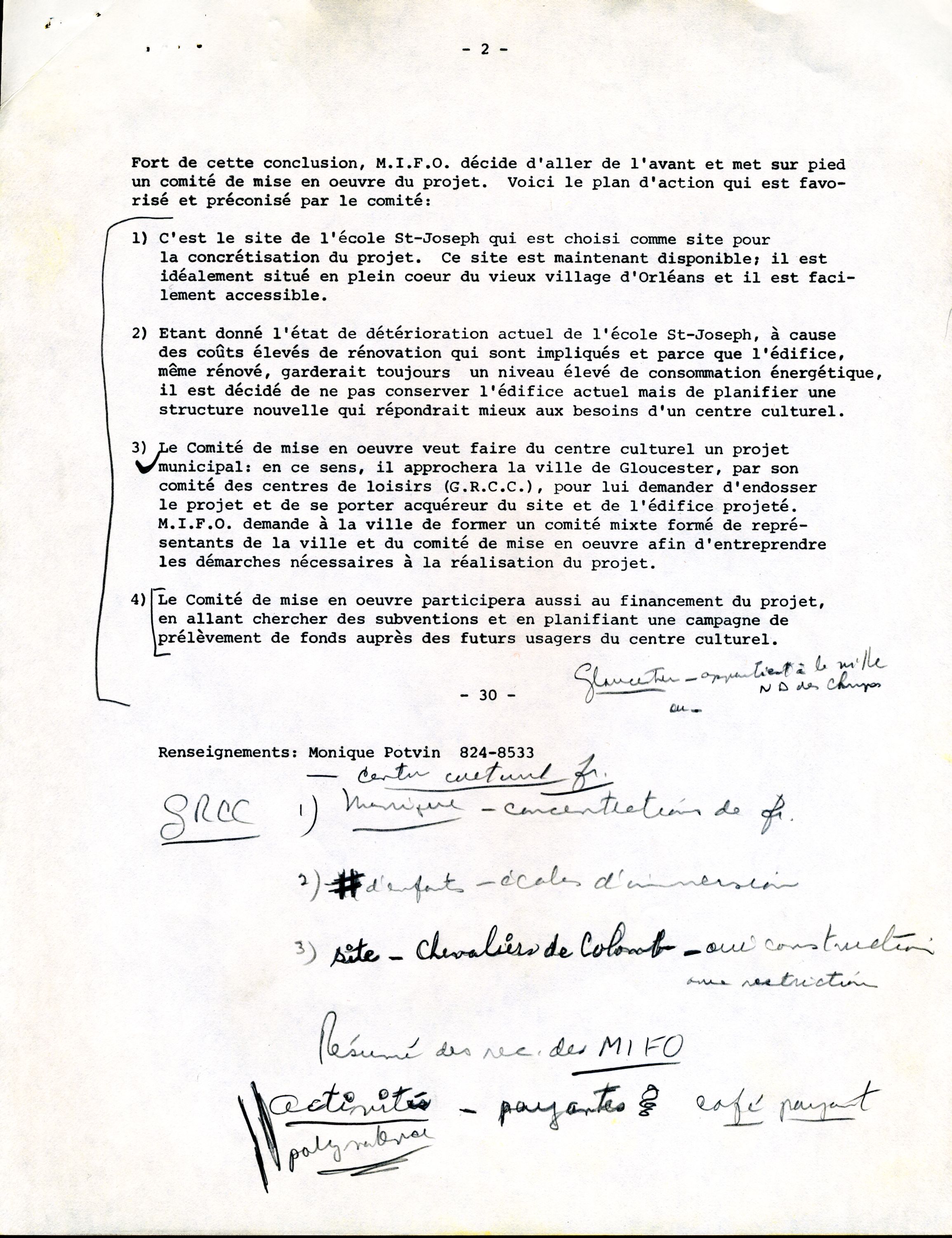 La francophonie d’Orléans, jeune, scolarisée et au revenu élevé, s’est donné des institutions à son image. Fondé en 1979 par des citoyens qui cherchaient un autre lieu que la paroisse pour vivre en français, le Mouvement d’implication francophone d’Orléans (MIFO) est de celles-là. Sous ses auspices, le modeste Studio des jeunes des débuts, mis sur pied par une poignée de bénévoles, a fait place au Centre culturel d'Orléans, un centre polyvalent, qui loge aussi le Théâtre du Village d’Orléans, la Librairie du Vermillon et le Centre Séraphin-Marion d’Orléans. On doit au MIFO d’avoir mis en place des services préscolaires dans les écoles françaises de la région. Il présente des expositions, des spectacles de danse, des soirées de poésie, des concerts, des représentations de pièce de théâtre, des films. Principal présentateur de la programmation française du Centre des arts Shenkman, le MIFO s’est érigé comme un incontournable pour les artistes francophones de tout le pays.