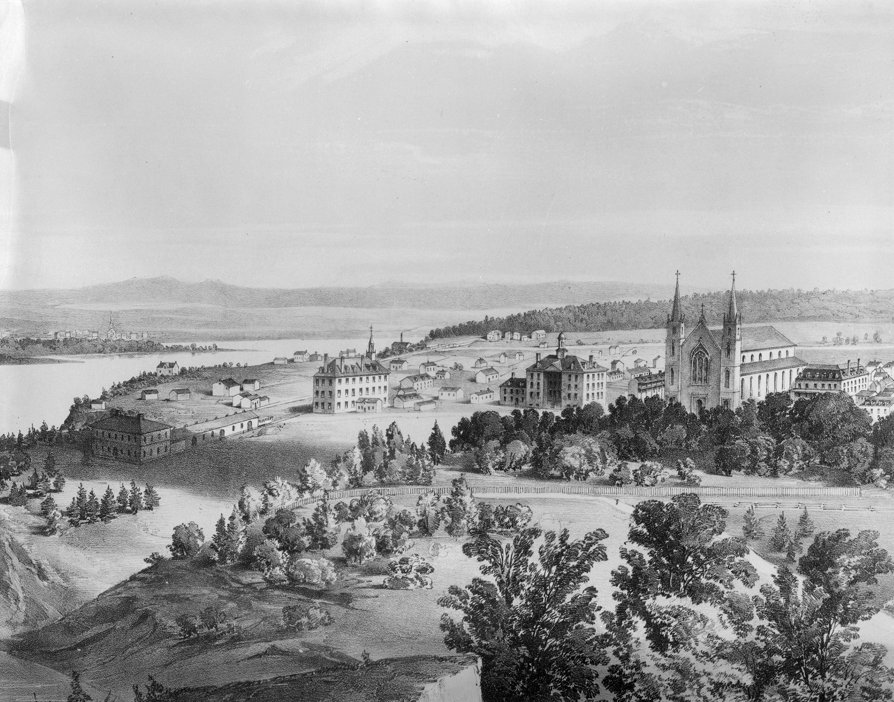 Hôpital général de Bytown, 1845-1850. L’ensemble comprend trois bâtiments : le premier couvent, le premier pensionnat et le premier hôpital de Bytown, fondé par sœur Élisabeth Bruyère.