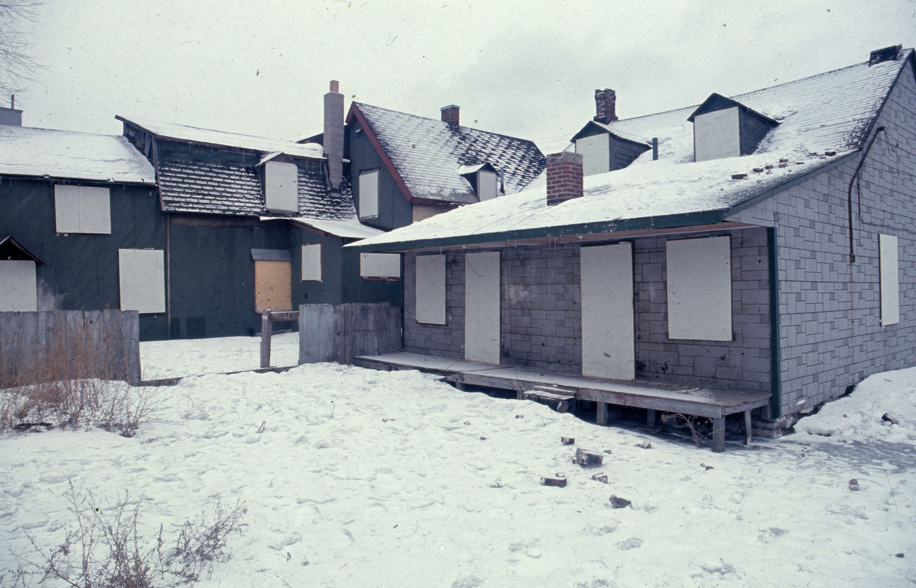 Maisons placardées de la Basse-Ville d’Ottawa avant leur démolition. Plusieurs centaines de maisons du quartier subiront le même sort au cours des décennies 1960 et 1970. Photo: François Roy.