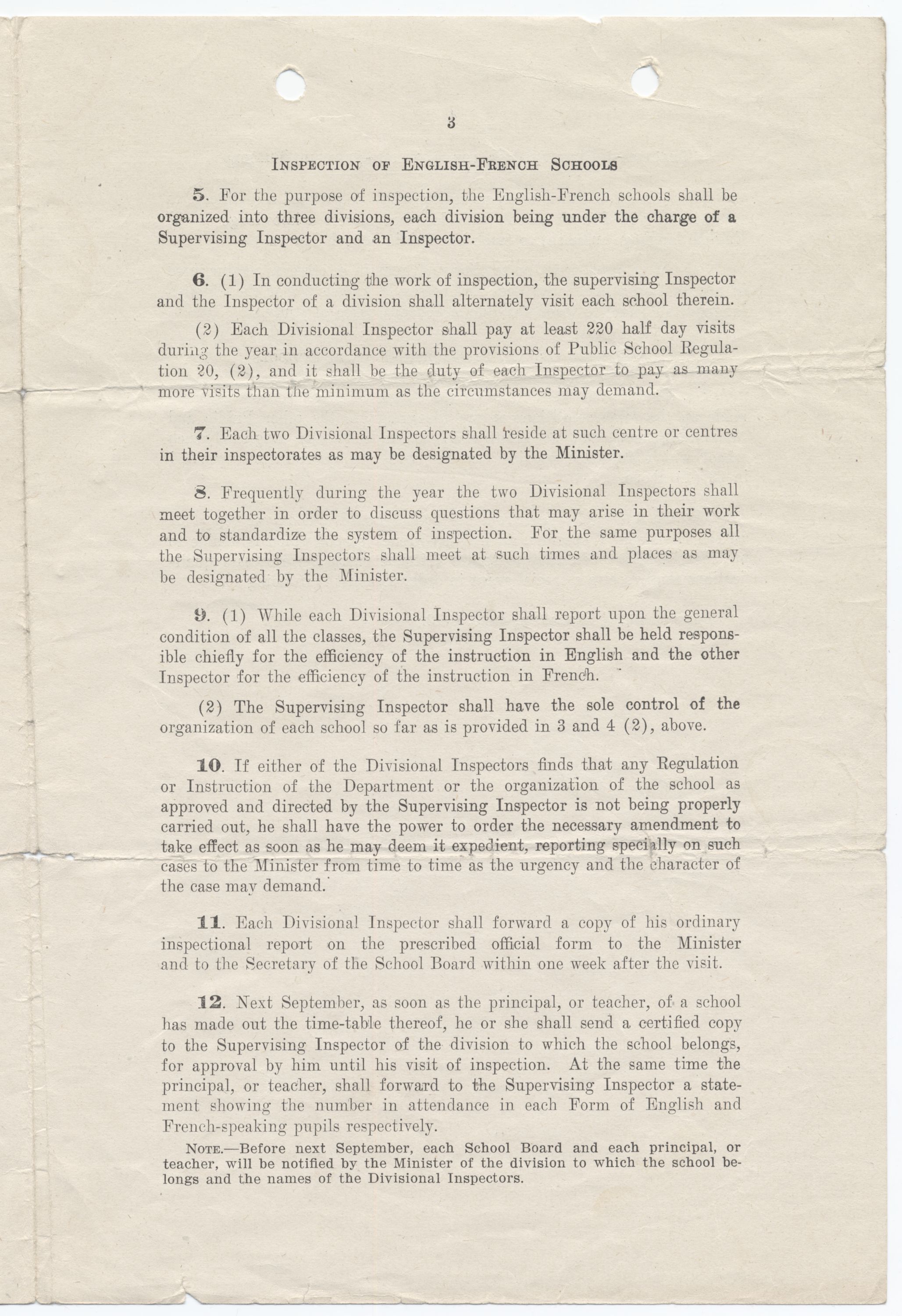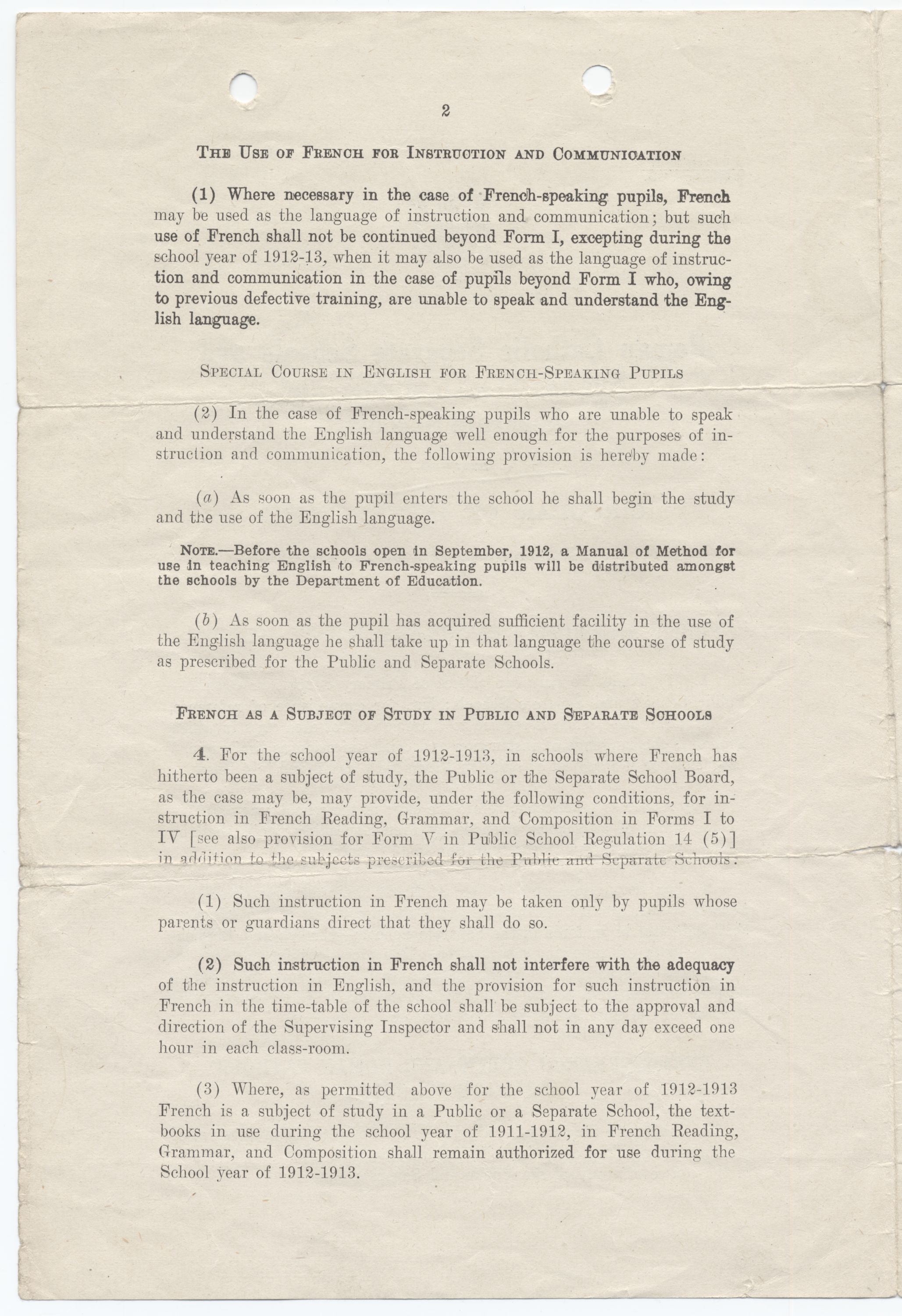 The crisis has loomed for some time. Already in 1890, the Government of Ontario tries to impose a regulation requiring that all subjects in the educational program be taught in English. Easy to get around by the inspectors applying the regulation locally, it has the effect of pushing several French schools toward the separate school system, which stirs up resentment among Anglo-Protestants, who call for more muscular intervention.