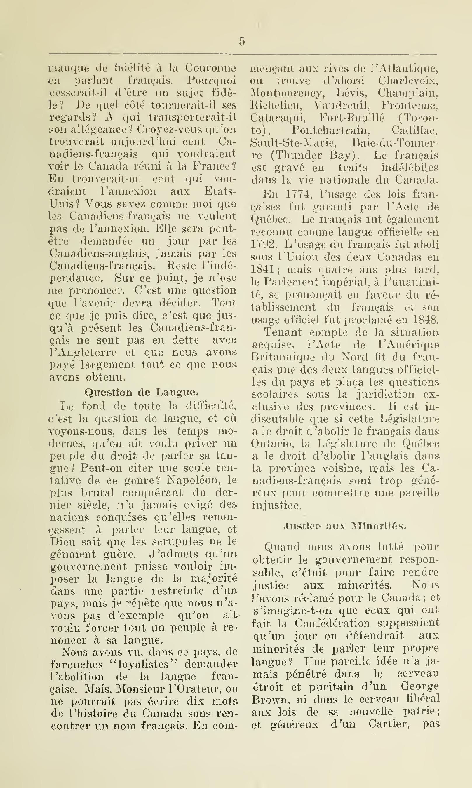 Ottawa n’a rien d’unique à cet égard. Dans l’arène fédérale, dès les années 1870, les francophones de la province délaisseront les conservateurs pour les libéraux, perçus à tort ou à raison comme plus favorables au Canada français et aux minorités. L’élection d’un Canadien français, Wilfrid Laurier, à la tête du Parti libéral du Canada en 1887 sera un autre facteur permettant d’expliquer ce réalignement politique. Enfin, la crise scolaire, déclenchée par la décision du gouvernement conservateur de l’Ontario d’interdire l’enseignement en langue française au-delà de la deuxième année du primaire dans les écoles de la province, fera définitivement pencher la balance en faveur des libéraux.